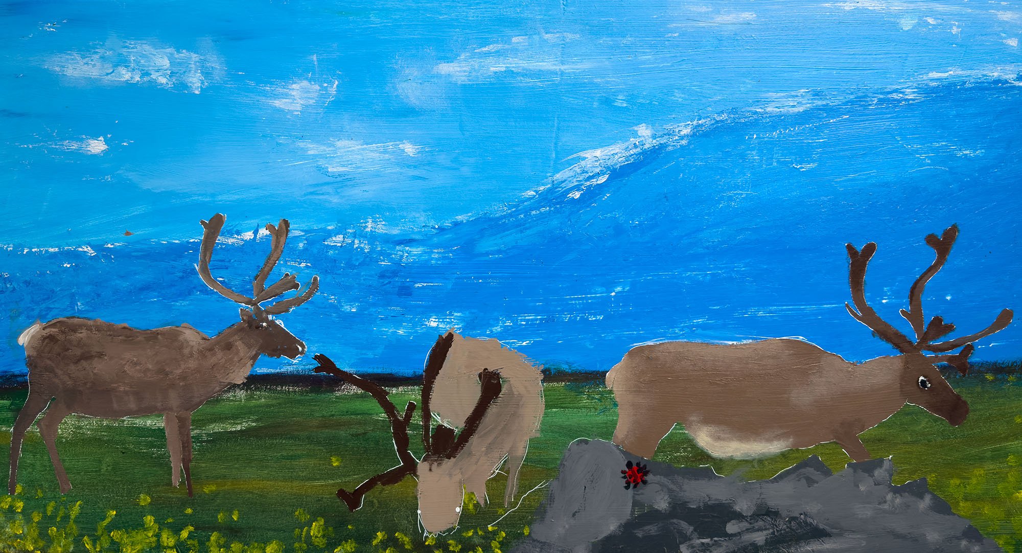 The Yukon Arts Centre and the Arctic Winter Games 2026 invited young artists from across the North to submit two‑dimensional artworks that honour and explore caribou and reindeer. We’re excited that youth have reflected on the deep connections between these iconic animals and Northern communities, and are expressing these relationships through creativity, storytelling, and with a sense of fun!